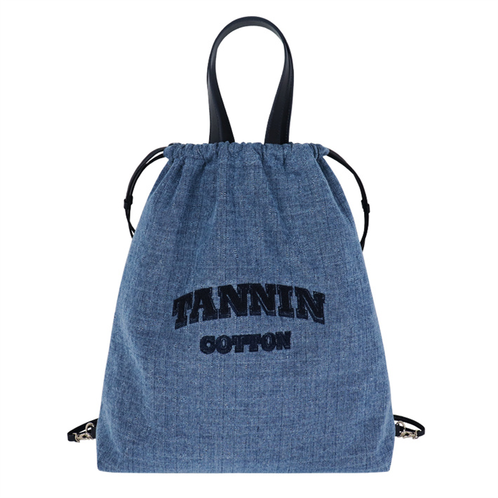 定制雙面背折疊抽繩束口袋 鐳射牛仔布雙肩包 簡(jiǎn)易爬山抽繩運(yùn)動(dòng)包