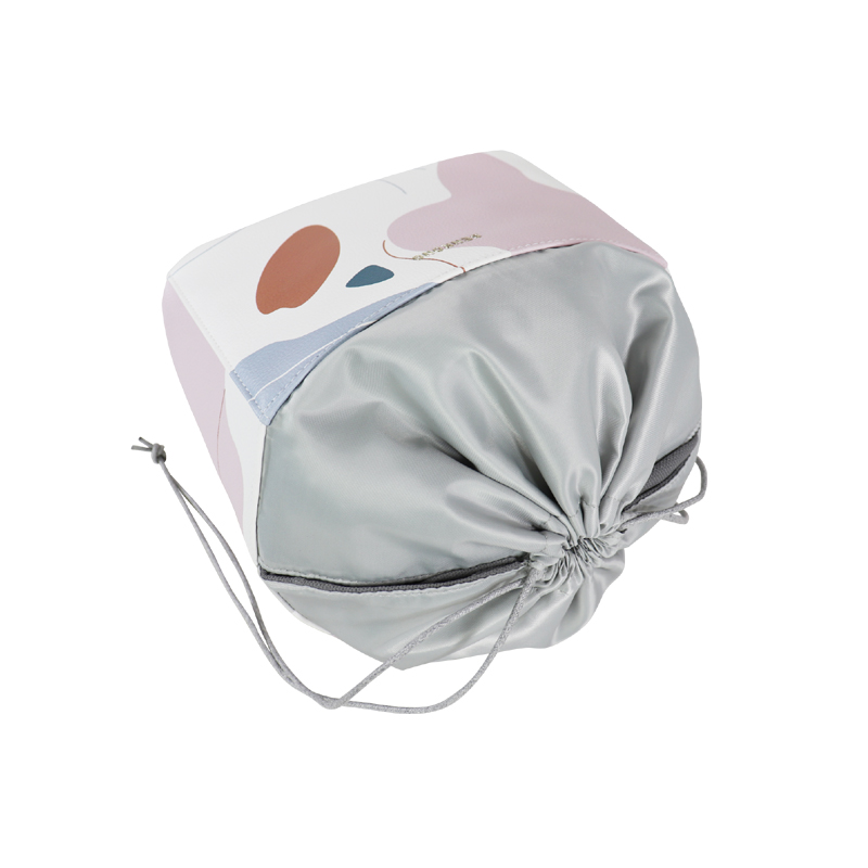 大容量碎花化妝包 懶人抽繩束口PU皮革內(nèi)膽包 防水母嬰用品收納包