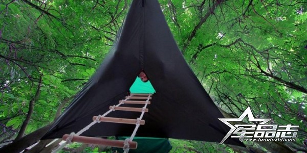 在實(shí)際使用時(shí),使用者分別將3個(gè)頂角位置的金屬棘輪扣及尼龍固定帶與樹(shù)木固定后,便完成帳篷的懸空搭建工作。此時(shí)需注意的是,雖然Stingray可懸掛在任何高度使用,但為安全起見(jiàn),它與地面的懸掛高度最好不要超過(guò)1.2米。