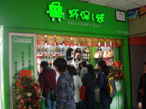 同學(xué)們爭相參觀、搶購時(shí)尚環(huán)保的環(huán)保1袋產(chǎn)品。