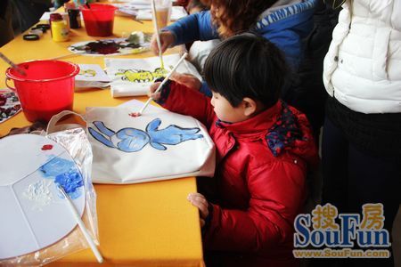 售樓處內(nèi),大家激情洋溢,男女老少齊齊上陣。大家挑選自己喜愛的帆布袋,他們提供的圖案,或自己獨創(chuàng)親自繪制各種各樣的環(huán)保袋?,F(xiàn)場一位業(yè)主告訴記者,“這活動不僅培養(yǎng)了小朋友們的動手能力以及普及了綠色環(huán)保的公益理念,同時讓我們家長與孩子有了一起動手的機會,增進了感情,也讓我們了解到孩子的興趣取向?!?br />