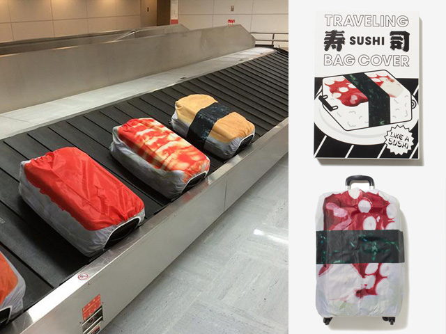 千奇百趣!日本人的創(chuàng)意真系無極限。上年有公司推出了防水的壽司行李箱套,當(dāng)中有蛋、金槍魚、三文魚以及蝦壽司。行李急穿上新衣后出現(xiàn)在行李輸送帶,就如放大版的迴轉(zhuǎn)壽司,好抵死!