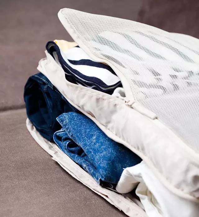 衣物袋是雙層的,可以把褲子和上衣分開裝,一般可以裝2-3條褲子,3-4件T恤。而且,上層是可視型網(wǎng)格設(shè)計(jì),方便看清里面的衣物,找起來也方便。