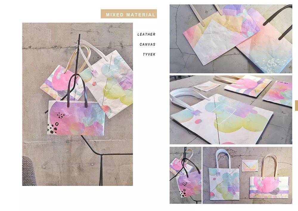 Gradual Summer以Tyvek? 1082D 為主要材質(zhì),印上一系列色彩絢麗的圖案,成為一系列夏天主題的包袋,每個包袋都是一個夏日的故事。