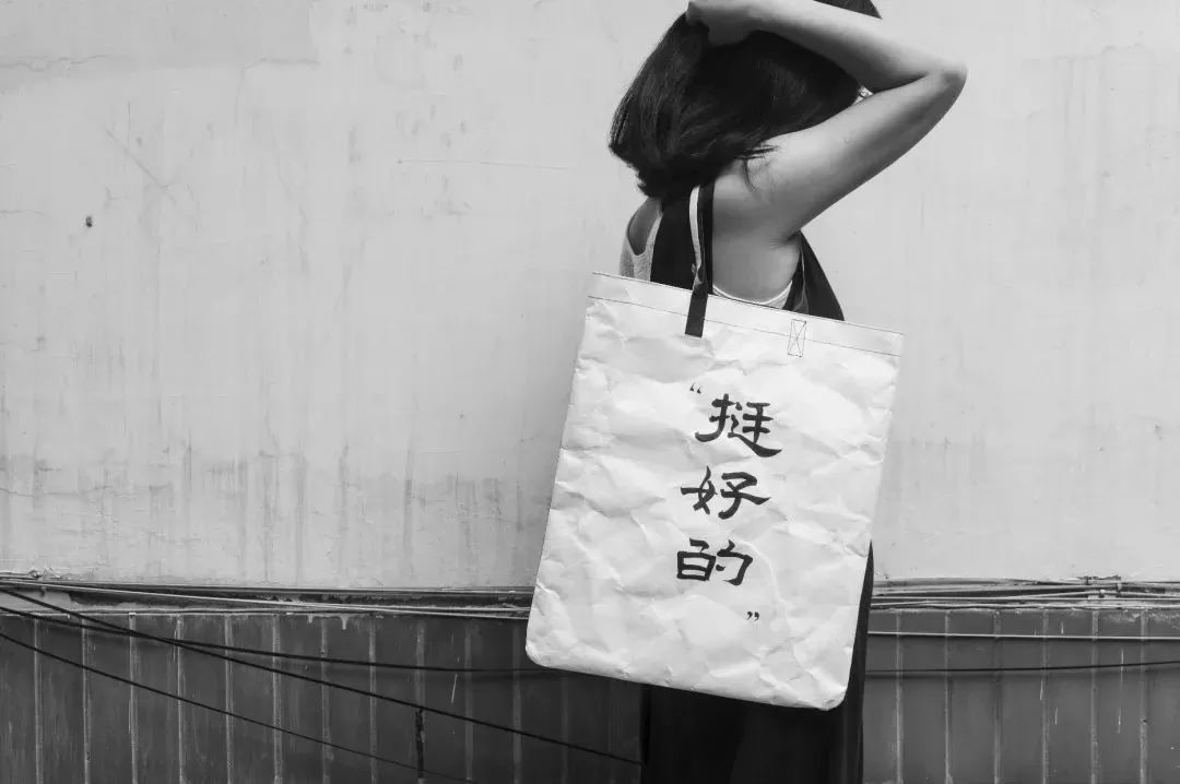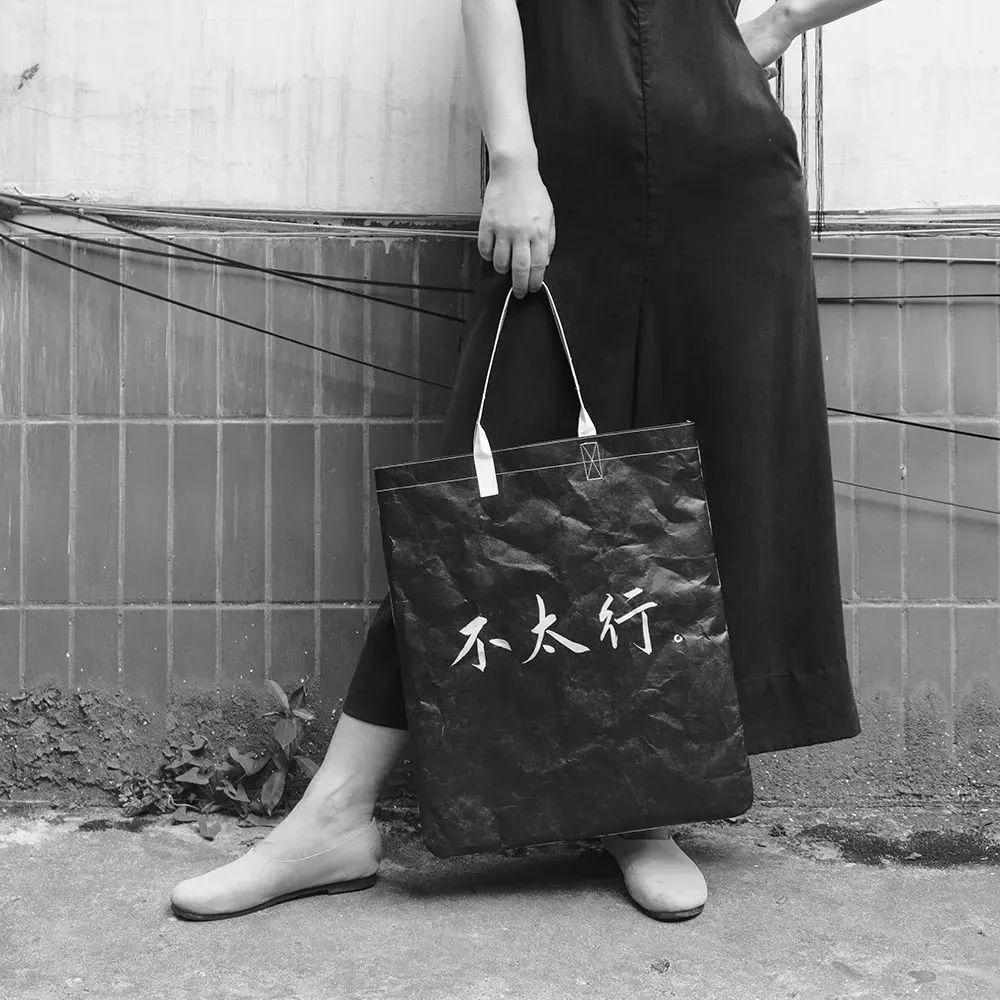 Tyvek? 特殊的紙感讓設(shè)計(jì)師聯(lián)想到了文字。為了充分體現(xiàn)漢字的魅力,并呼應(yīng)Tyvek? 的紙質(zhì)特性,所有文字和圖樣均由設(shè)計(jì)師手寫并掃描而成,保留了書法墨跡在宣紙上的獨(dú)特效果。整個系列的文字內(nèi)容選擇了三組反義詞和三組潛臺詞,兼具嚴(yán)肅與詼諧,為不同人群需求提供豐富的選擇。