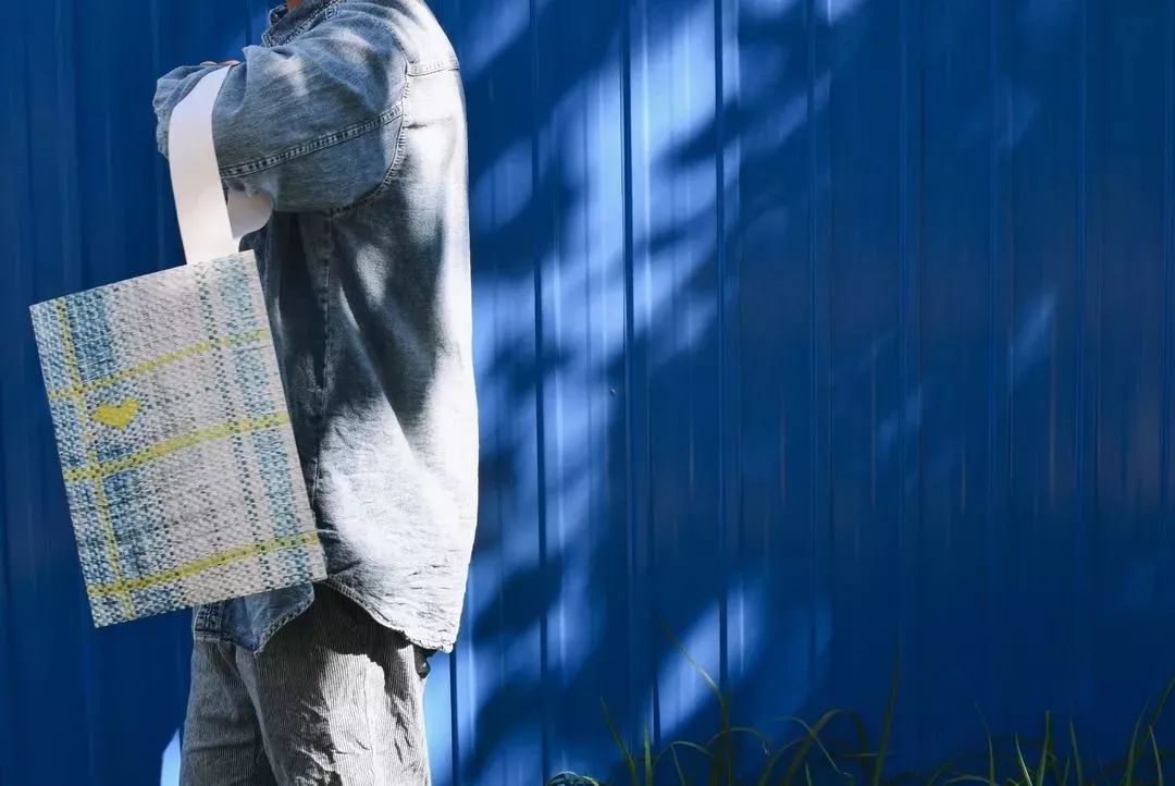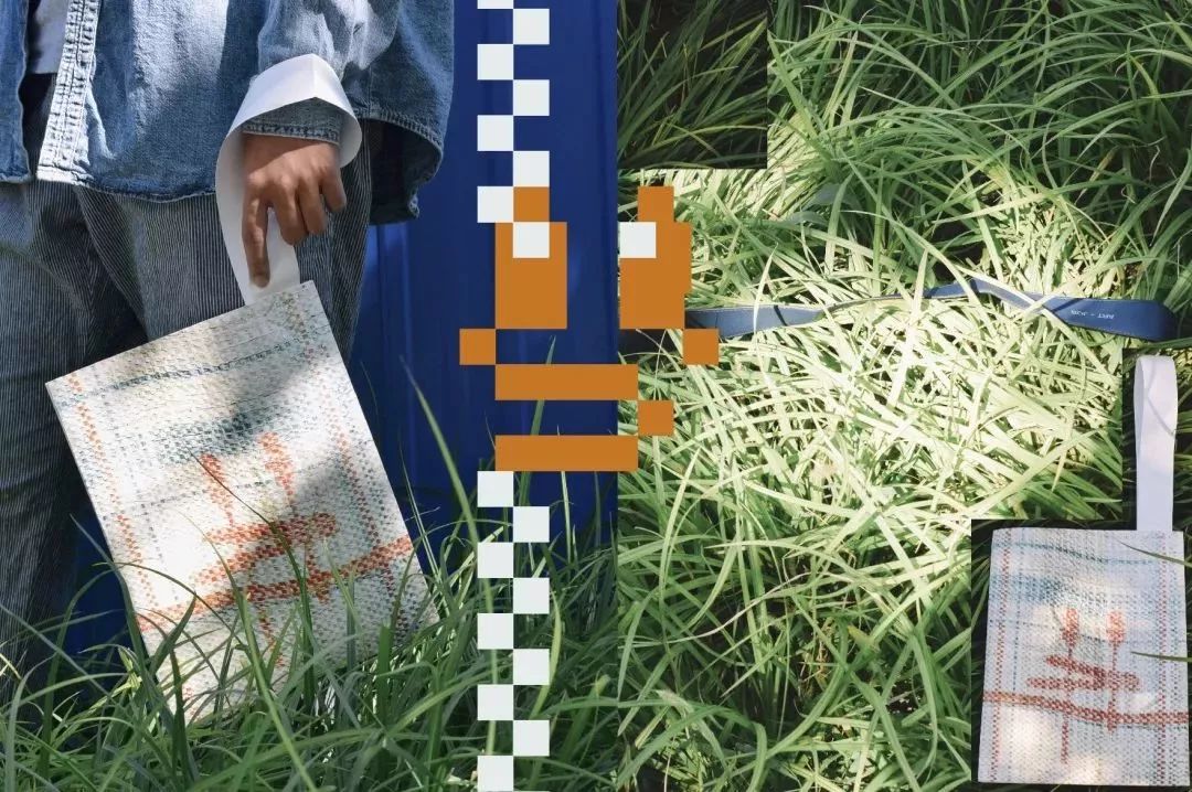 設(shè)計(jì)主要從編織袋材料質(zhì)感印制到Tyvek? 材料上的沖突感和矛盾感入手,著重表現(xiàn)了編織袋的紋理與光澤,并從編織造成的格子肌理出發(fā),創(chuàng)造像素風(fēng)的圖樣。圖樣主要以輕松愉快與些許懷舊感為主。